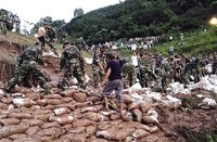 受连日强降雨影响,万州区太龙镇万丰桥水库水位暴涨,加之雨水冲刷,水库外围堤坝出现一个约长15米、宽5米、深2米的坍塌缺口,并不断扩大,如不及时控制将有决堤危险,威胁到下游万丰村群众和太龙中学学生的生命财产安全。险情发生后,武警重庆总队船艇支队所属三大队45名官兵携带专业抢险设备,于6月30日18:05到达现场。截至30日20:05,经过2小时的紧张奋战,险情已得到有效控制。目前,仍在紧张抢险中。 |